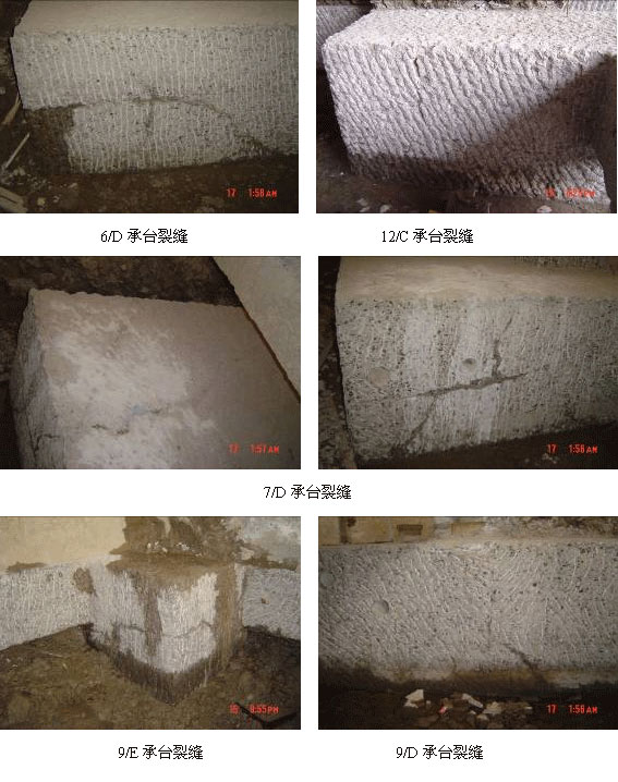 2、根据现场观测和水钻钻出混凝土芯体观测该建筑物基础桩承台裂缝大多属于陈旧性裂缝,且经目前沉降观测其沉降值在5mm左右,由此推断承台裂缝与本次建筑物加层建设关系不大。但是,由于建筑物加层建设,很难保证在上部荷载增大、结构内力进行调整达到新的平衡过程中不会产生新的裂缝。