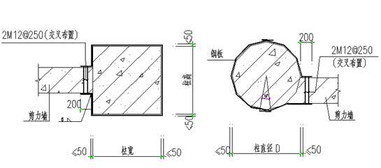 1.工程概况:本工程为河北省廊坊经济技术开发区某酒店加固改造工程。结构形式:三层及以下为现浇钢筋砼框支-剪力墙结构体系,四层以上为现浇钢筋砼剪力墙结构体系。施工过程中经检测,地下室、首层及二层柱及剪力墙的砼强度不满足设计要求,需对结构主体进行加固。