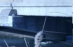 图2-a 运营仅3年的桥,沿水流区域钢筋锈蚀 图2-b 中环线上的蝶桥