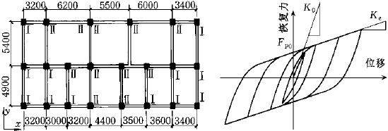 图1 隔震房屋标准层平面 图2 单向水平力作用下的恢复力曲线