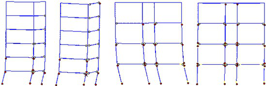 由于缺少上述各建筑详细资料和建筑场地的实际地震动记录,因此对上述各建筑震害和倒塌无法逐一准确模拟再现。目前仅获得漩口中学教学楼A、F和办公楼H的建筑平面。为此,按GB50011-2001《建筑抗震设计规范》和PKPM软件对倒塌的教学楼A和未倒塌的办公楼H进行重新设计,然后用弹塑性动力时程分析方法对其进行分析。地震动输入采用汶川地震中记录到的什邡-八角波(NS+UD),并将地震动峰值加速度PGA调整为1g(我国地震烈度表11度无对应峰值加速度PGA,所以按10度水准取PGA=1g。汶川地震记录到的PGA最大约为1g),分析得到的结果见图8。分析结果表明,在相同的地震动强度输入下,教学楼A发生倒塌,而办公楼H未倒塌。同时,由图8a可见,教学楼A的倒塌破坏起始于底层中柱柱头破坏,底层倒塌倾向于走廊一侧,上部倾向于教室一侧,与实际震害一致。由于汶川地震具有明显的方向性,教学楼A和办公楼H均采用什邡-八角波(NS+UD),按结构横向平面框架模型计算,这对于横向为东西向的办公楼H较为不利。由图8还可见,教学楼A框架柱的塑性铰主要集中在底部1~2层,且上部楼层的梁端塑性铰数量也不多;而办公楼H框架柱的塑性铰则基本各层均有,且梁端也大多形成塑性铰。出现塑性铰的数量代表结构耗能能力大小。在超过设防烈度近3度的强烈地震下,出现柱铰难以避免,但如果柱铰数量多,则可增加整个结构在倒塌前的耗能能力。