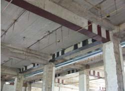 ①柱包角钢技术应用解决了大量的框架柱刚度不够的问题,渗透性聚合物砂浆和角钢、缀板粘贴填充形成钢砼组合结构,大大提高了承载能力且缩短了工期,减少了工程造价;