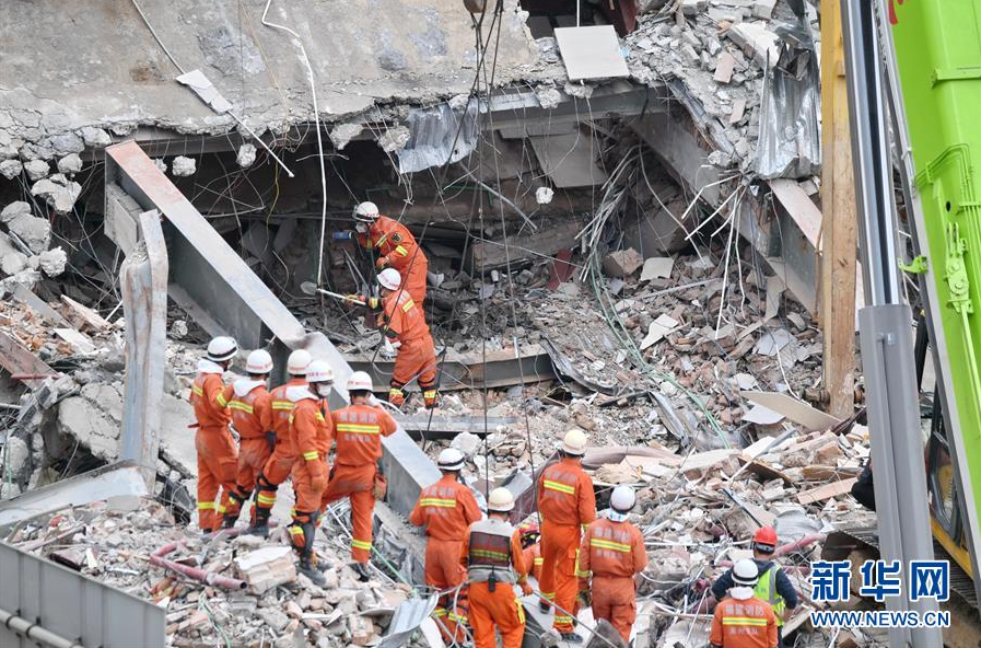 图1.2020年3月11日拍摄的泉州酒店搜救现场 新华社记者 林善传 摄[5]